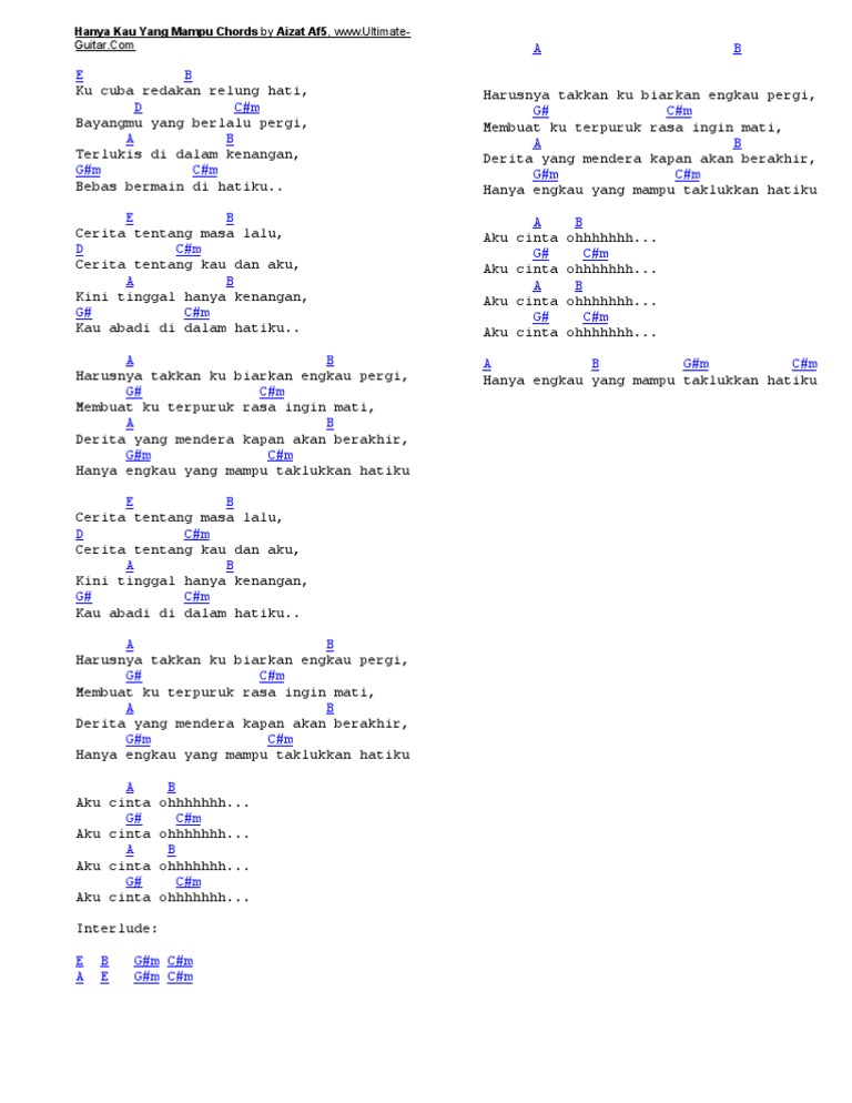 E B D C M A B G M C M A B Hanya Kau Yang Mampu Chords By Aizat Af5 Www Ultimate