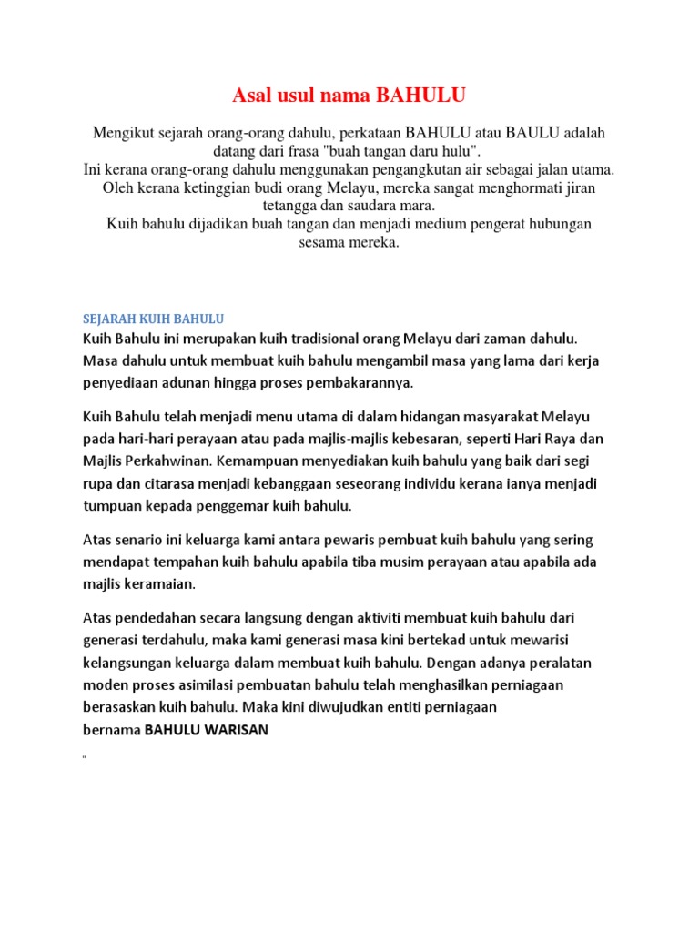 Asal Usul Nama Bahulu