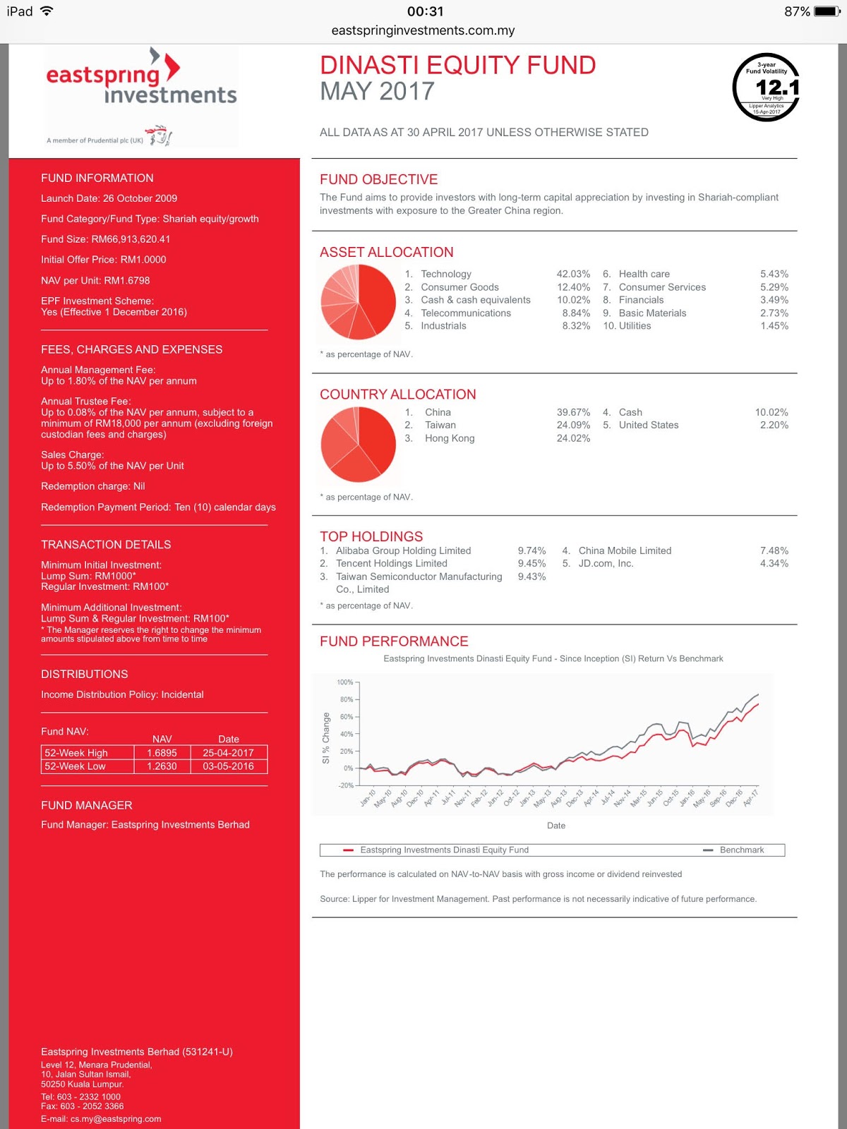 Eastspring Syariah Compliant Unit Trusts Eastspring Investments Dinasti Equity Fact Sheet May 2017