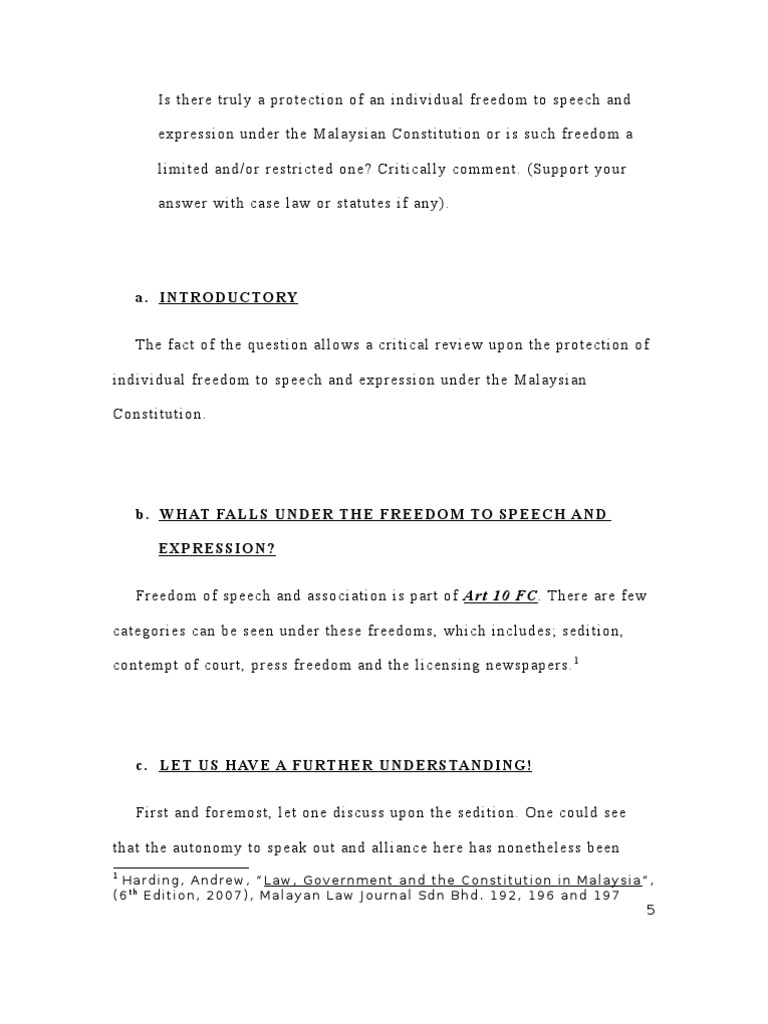 Individual Freedom To Speech And Expression Under The Malaysian Constitution Public Law Justice Free 30 Day Trial Scribd
