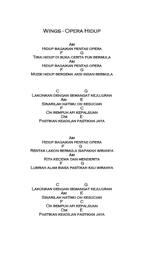 Wings Opera Hidup Chord Gitar Kord Melayu Malay Guitar Chords Archive