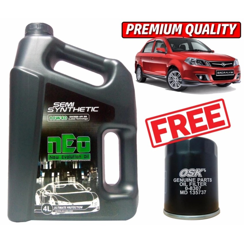 Engine Oil 10w40 Semi Synthetic Neo 4litre For Proton Saga Flx Free Oil Filter Shopee Malaysia