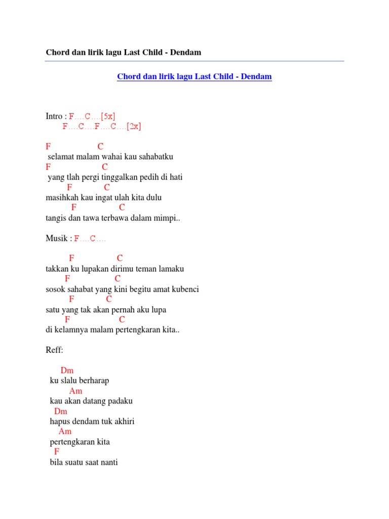 Chord Dan Lirik Lagu Last Child Dendam By Chord Zila Issuu