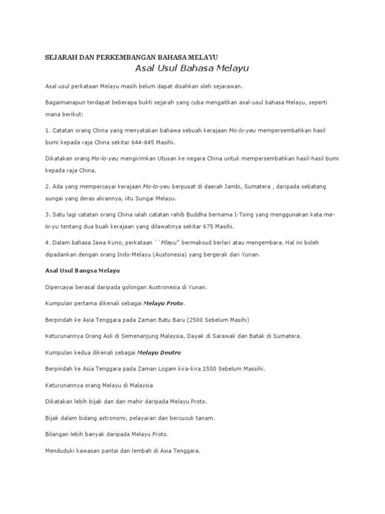 Aku Buku Skuter Asal Usul Bahasa Melayu Nota Utk Ppismp