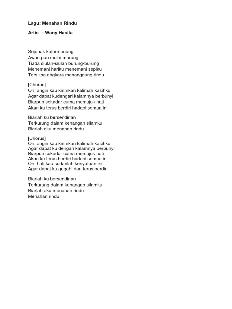 Menahan Rindu Lyrics Wany Hasrita