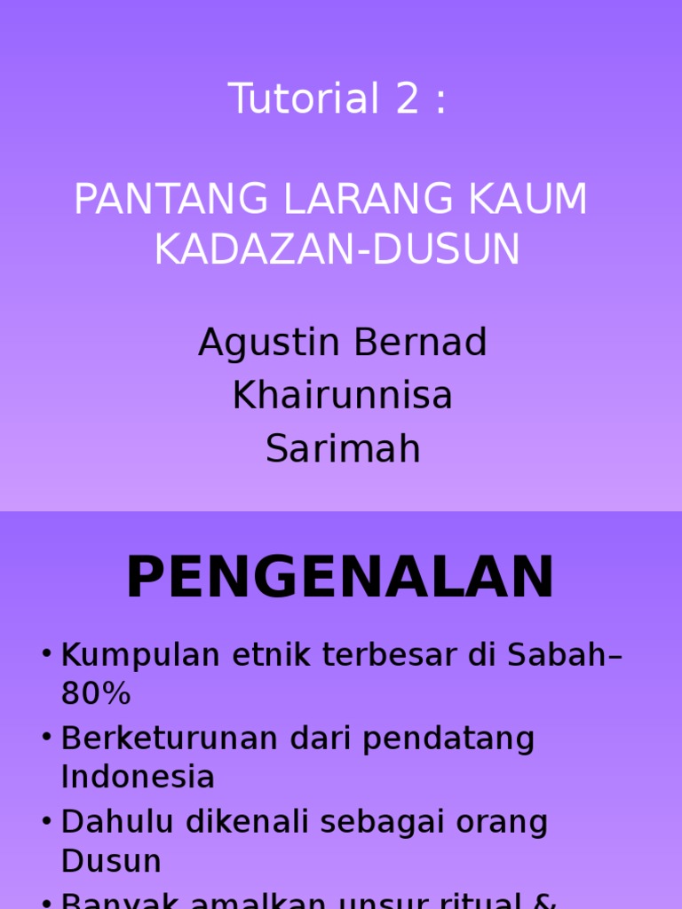 Pribumi Sabah Kadazan Dusun Lotud Rungus Tambanua Dumpas Paitan Ppt Download