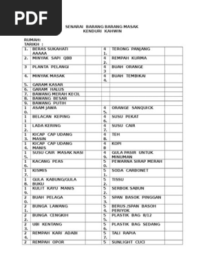 Senarai Barang Barang Masak Kenduri Kawin