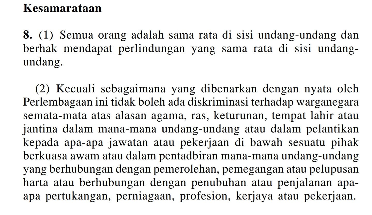 Perkara 8 Perlembagaan Persekutuan Malaysia Kebebasan Asasi Ahmadzikron