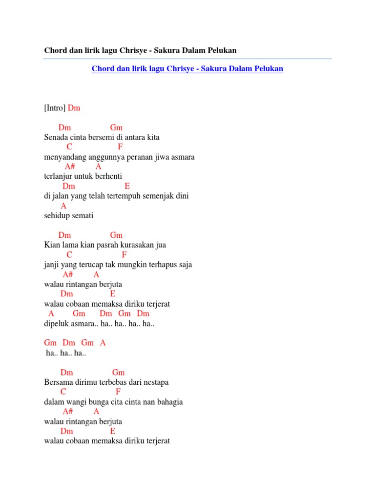 Chord Dan Lirik Lagu Chrisye Sakura Dalam Pelukan