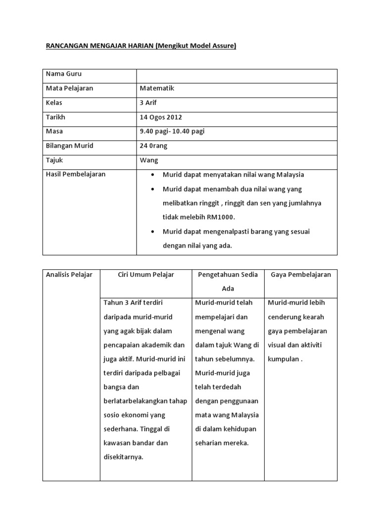 Dokumen Tips Rph Penolakan Wang Matematik Tahun 4