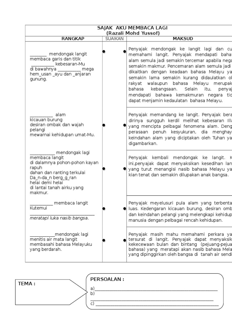 Bahasa Melayu Bahasa Malaysia Pmr Spm Komsas Tingkatan 4 Sajak Aku Membaca Lagi