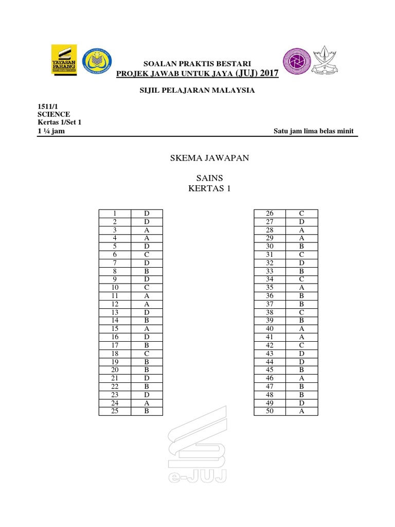 Skema Sains Kertas 1 Set 1 2017 Pdf