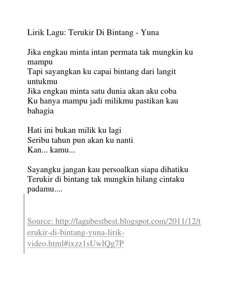 Terukir Di Bintang Lyrics By Yuna Jika Engkau Minta Intan