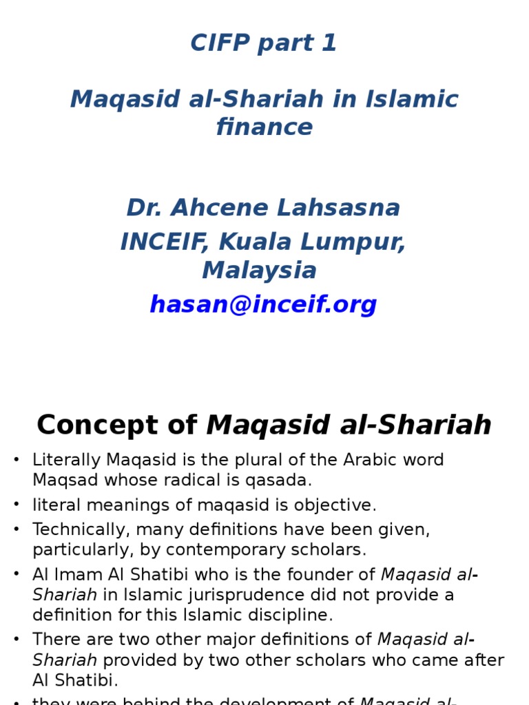 Shariah Maqasid Al Shariah Islamic Bankers Resource Centre